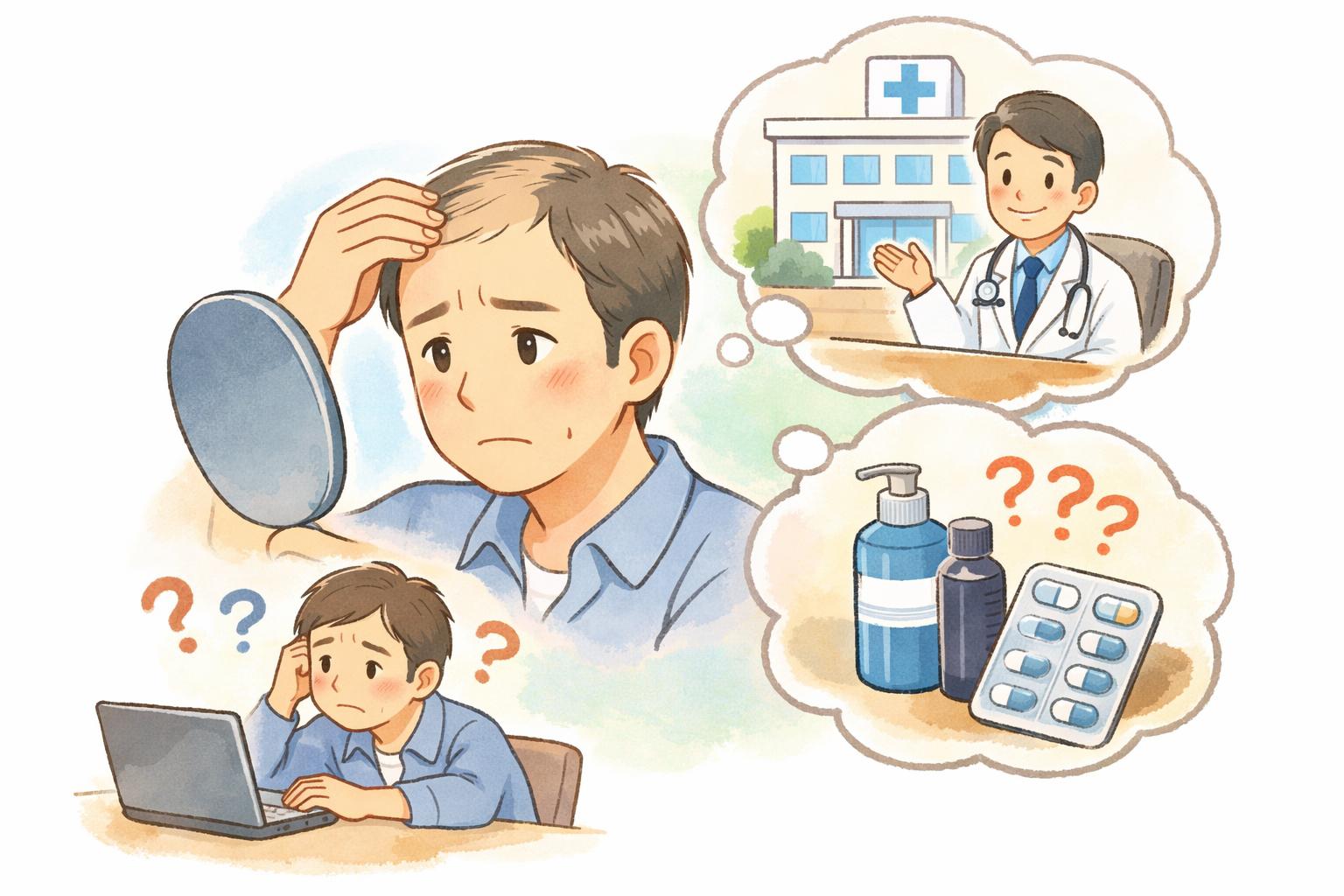 まずは手軽に始めたい場合は、発毛効果が科学的に認められている「ミノキシジル」配合の第一類医薬品(発毛剤)を選ぶのが正しいセルフケアです。治療と並行して、バランスの取れた食事や正しい頭皮ケアといった生活習慣の見直しも、健やかな髪を育む上で欠かせません。本記事を参考に、ご自身に合った最適な方法を見つけ、悩みを解消するための一歩を踏み出してください。